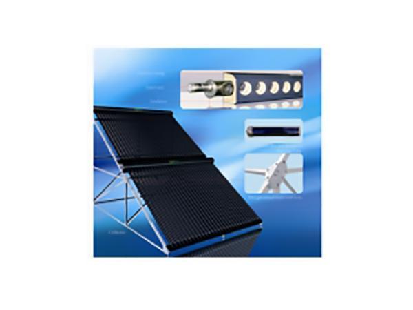 The Himin JPS collector is composed of a high-efficiency vacuum tube. The unit uses the most advanced sputtered double cermet selective absorber coating that features an absorptivity of 0.94 and emissivity of 0.04. It has water inside the glass tube. The bracket goes together with the collector. The water circulation is inside the collector header, the tubes and the water storage tank, which is called the direct system.